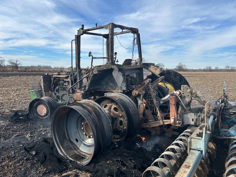 Fire damaged, Your bidding on the Tractor ONLY, Serial# RW8420P35686, Tach Hrs: 9500, Diesel, MFWD, Dual Remote, Dual Rear Wheels, Hydrostat, Front Weights