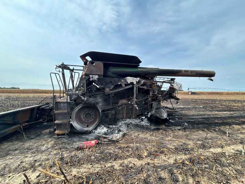 Fire damage. Combine Serial # 1H09770STA0738017, with 2000 John Deere 894 Corn Header, Serial: NA