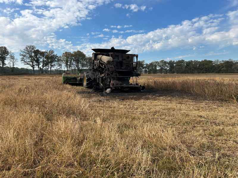 Fire damage, 2011 John Deere STS Combine – No Header – Serial # 1H09770SV80742173, Tach Hrs: 2900
