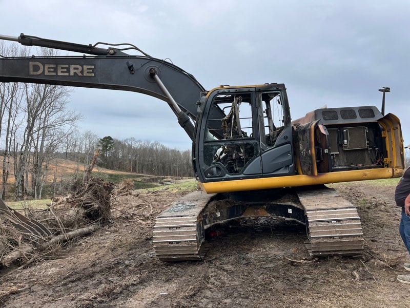 Fire damage, Serial # 1FF210GXJFE523330, Approx 5800 hours, cab and motor damage