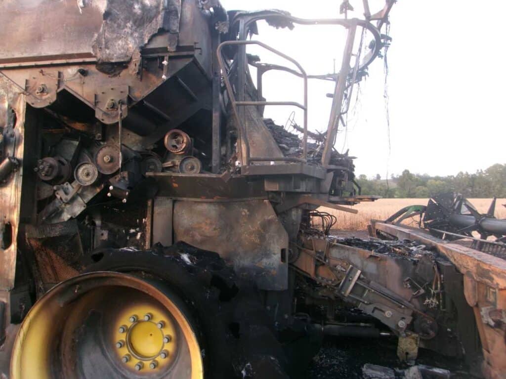 Fire damage, 2015 John Deere 5670 Combine with John Deere 30FT Header.